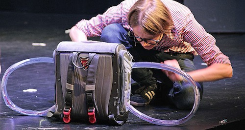 Da liegt natürlich ein Problem: Unmöglich, so etwas in Gänze wiedergeben zu wollen. Das hätte jeglichen Rahmen gesprengt. Also beschränkte sich das Team auf Splitter, auf besondere Ereignisse, Momente, und selbst die können nur angerissen werden. Trotzdem dauert das Musical locker drei Stunden... Aber es reißt mit, oder besser: Das Publikum reist mit, begleitet (bei der Premiere) Justus Lüken, Jonas Helmers, Aneele Fischer und Sophia Ackermann bei ihren Stippvisiten. Erleben Mammut und Marsschulleiter, junge Mönche und Kriegsbegeisterte, bekiffte Schüler und die „besorgte Bürgerin“ Frau Schmidt, die gern Tipps an die Gestapo gibt.