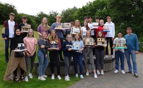 Im Rahmen des Halbjahresthemas "Architektur - moderne Wohnformen" haben die SchülerInnen der Klasse 10e diese Idee aufgegriffen und zunächst zeichnerisch und dann nach den eigenen Plänen im maßstabsgetreuen Modell (1:20) eigene schwimmende `tiny houses´ gebaut. Auf einer schwimmfähigen Styrodur-Platte sind in der Zeit zwischen und Oster- und Sommerferien Haus-Modelle aus Holz, MdF-Platten, Aluminium, Kunststofffolien, Pappen und Gips entstanden. Am letzten Schultag stand die Bewährungsprobe an: Alle schwimmenden Haus-Modelle wurden in einem Teich des Norddeicher Wellenpark zu Wasser gelassen. Die Bilder zeigen, wie eine moderne `floating city´ aussehen könnte.