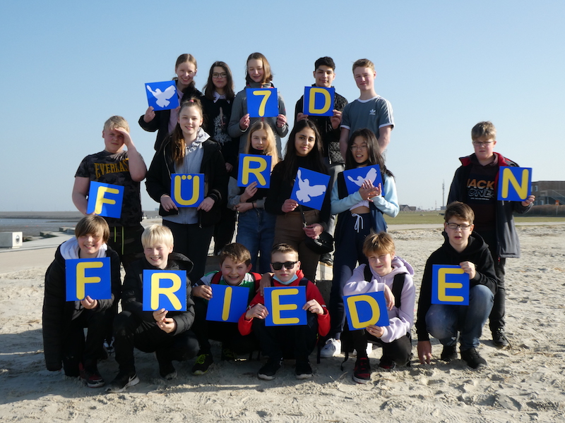 Zunächst stand neben einer allgemeinen Betroffenheit vor allem die Besorgnis um unsere ukrainischen Austauschpartner im Vordergrund. In einer schulinternen Kundgebung auf dem Schulhof wurden Fotos der Solidaritätsbezeugungen mit unserer Partnerschule in Kiew aufgenommen und unter anderem auf der Facebookseite der Partnerschule gepostet. Unsere Aktion wurde von unseren ukrainischen Freunden trotz ihrer existentiellen Sorgen bemerkt: 1476 Personen, die i.d.R. der Schulgemeinschaft unserer Kiewer Partnerschule angehören, haben bis zum 4. März die Fotos geliked."