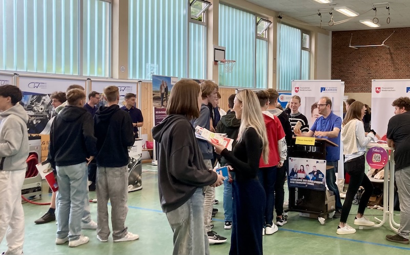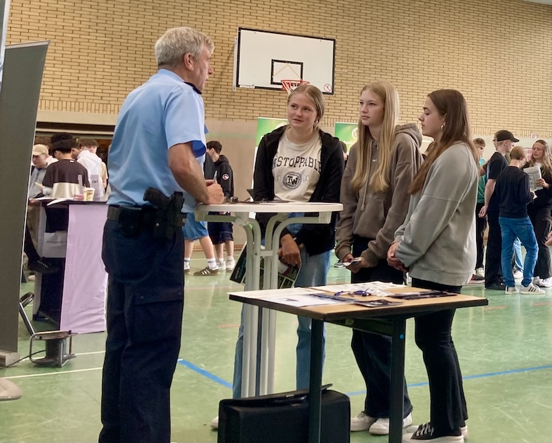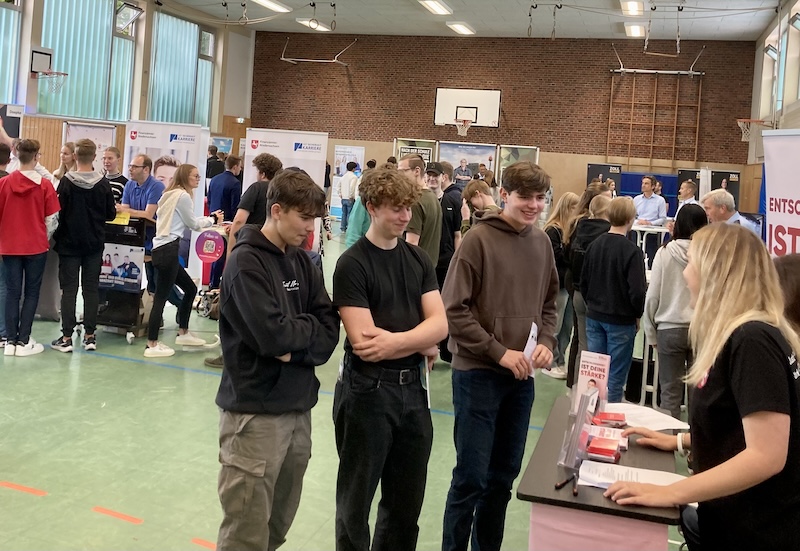 Für die Schüler/innen des 11. Jahrgangs diente die Messe u.a. zur Orientierung für die bevorstehende Wahl ihres Praktikumsplatzes. Auch viele Schüler/innen der Jahrgänge 12 und 13 interessierten sich für das Angebot und führten angeregte Gespräche mit den Ausstellern.