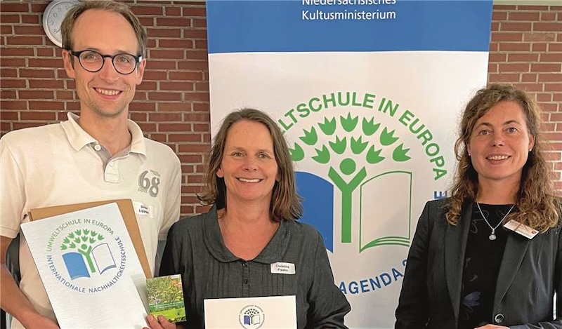 Ausschlaggebend war eine Reihe von Aktionen, darunter die Etablierung eines Klimaausschusses in der Schülervertretung, nachhaltige Flohmärkte, eine Baumpflanzaktion im Lütetsburger Forst und der große Spendenlauf Ende August, durch den eine Photovoltaikanlage gekauft werden soll. Diese Spendenaktion ist noch nicht abgeschlossen. Die UGN-Lehrer Silas Lippert und Christina Fisahn nahmen der Preis stellvertretend für das Gymnasium entgegen. Sie betonen, dass vieles noch unbearbeitet sei. Vieles am UGN fühle sich noch nicht nach Umweltschule an. „Aber gewürdigt wird hier eben der Prozess und der Weg zu einer klima- und umweltschützenden Schule. Es heißt, weiterhin am Ball zu bleiben und Kinder zu motivieren, selbst aktiv zu werden und so ein bleibendes Bewusstsein zu schaffen“, sagen sie.