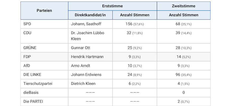 Wahlbenachrichtigungen, Wahlhelfende, Wahlkabinen, die Stimmzettel des hiesigen Wahlkreises Aurich-Emden, die versiegelte Wahlurne - alles wie bei der offiziellen Wahl am Bundestagswahl-Sonntag.