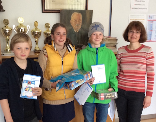 Mit den drei Preisträgern freute sich auch Frau StD' Terstegen, die den Wettbewerb am Ulrichsgymnasium organisiert.